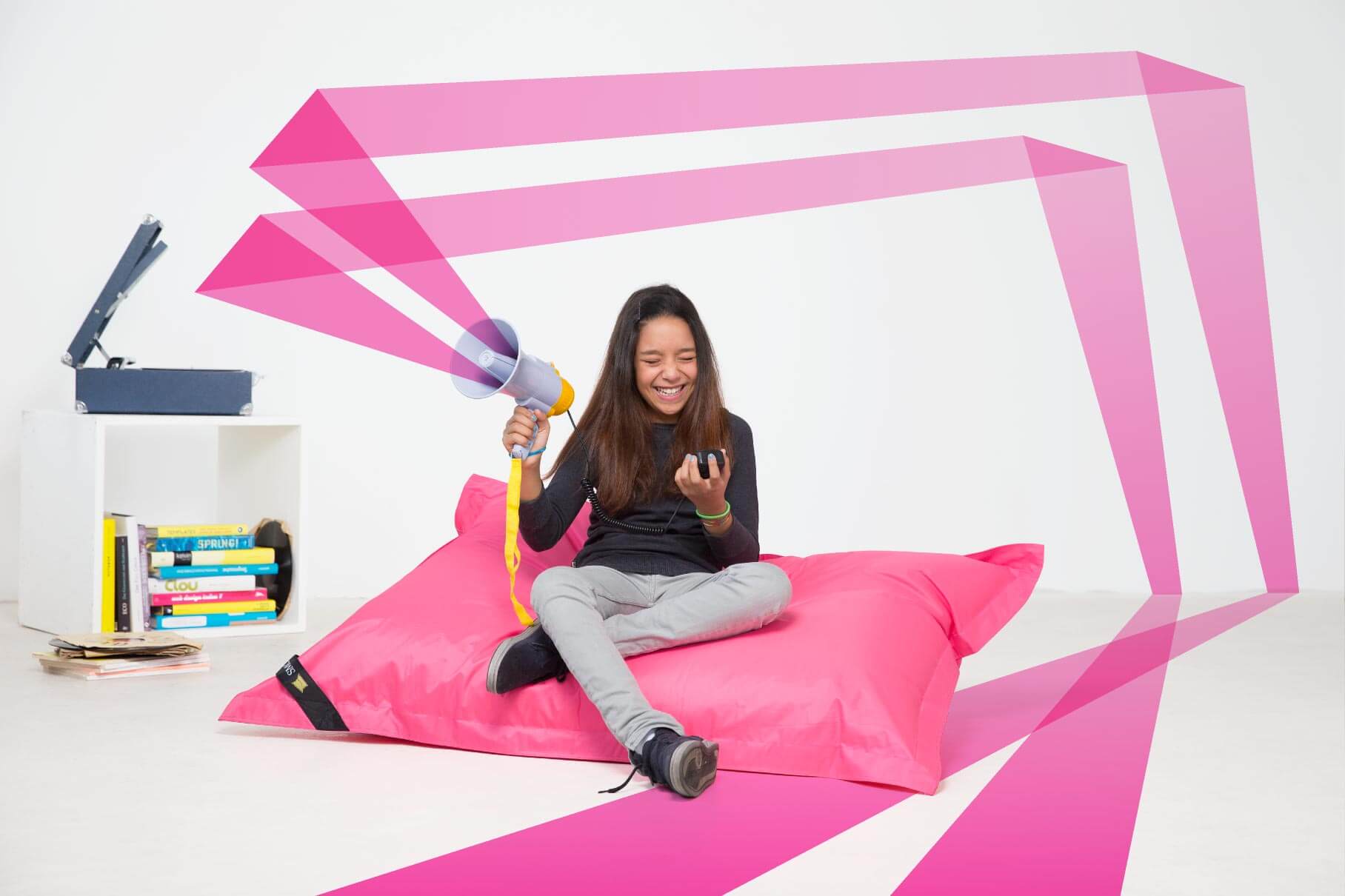 Übrigens ist so ein Kinderzimmerbewohner in Gelb oder Pink doch eine gute Möglichkeit, die neue Farblust auch im Halbdunkel zu zelebrieren. Der Neon Junior ist quasi der Kinder-Sitzsack-gewordene Reflektor in Übergröße. So ist auch im Dämmerlicht sofort zu erkennen, ob der Nachwuchs im Bett ist oder noch auf dem Partysitzsack abhängt. Die beste Vorstellung, wie grell der Neon Junior in der Farbe der Wahl sein kann, bekommt man übrigens live. Kein Bildschirm strahlt so hell wie Neon leuchten kann.